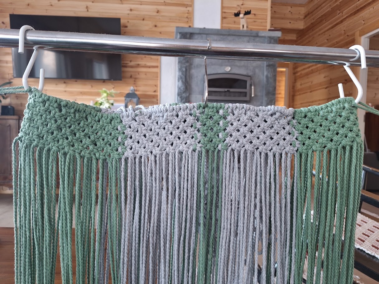 Katselin lankojani ja mietin, mitähän seuraavaksi. Jotain kesäistä sen pitäisi olla. Kesä tulee niin nopeasti, huomaamattakin. Jäätynyttä järveä ikkunasta katsellessani tuli mieleen pyyhe ja uikkarit. Kumpaakaan niistä en vielä kyllä halunnut makrameesta tehdä, joten kesäkassi! Sellainen isohko, johon mahtuisi pyyhe, uikkarit, juotavaa ja luettavaa rannalle vietäväksi.