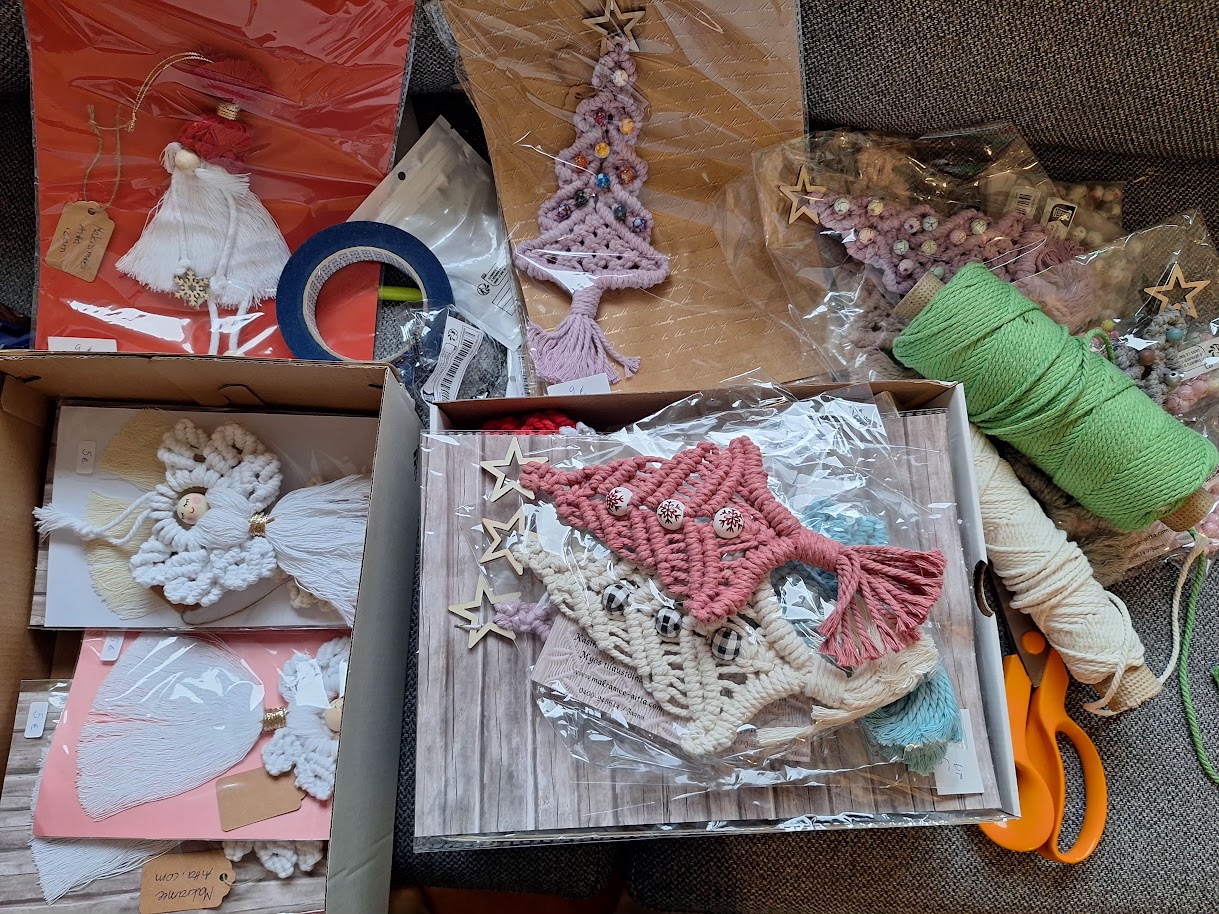 Kaivoin kaappien perukoista viimejoululta jääneitä joulutöitä ja onneksi niitä oli vielä jonkinverran jäljellä. Täytynee vielä solmeilla jotain uutta ja erilaista.